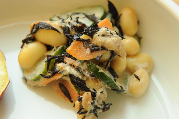 大豆の落とし揚げ さつま芋の甘煮 ほうれん草のなめたけ和え わかめのみそ汁