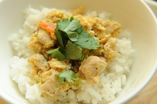 親子丼 五目豆 春菊ののり和え 大根のみそ汁 ☆おやつ サイコロラスク