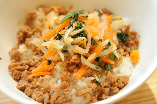 ビビンバ丼 鶏肉と大根の中華煮 中華風コーンスープ