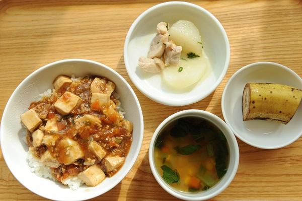麻婆丼 鶏肉とかぶのうま塩煮 小松菜のスープ
