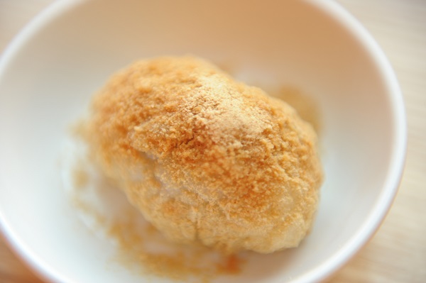 鶏の照り焼き 小松菜の卵とじ もずくの酢の物 なすのみそ汁 ☆おやつ きな粉おはぎ