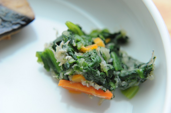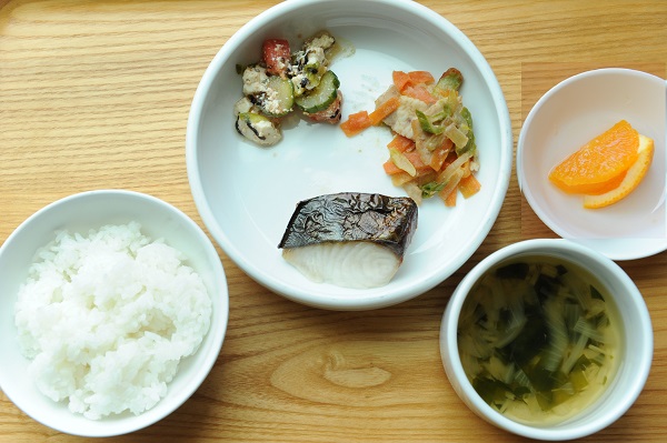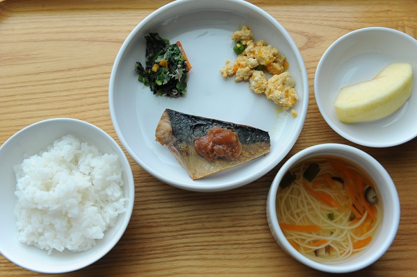 さばの竜田揚げ 高野豆腐の卵とじ 青菜とひじきのゴマ和え さつま芋のみそ汁